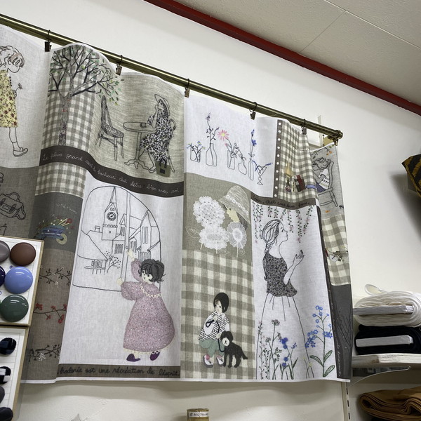 ●色も柄も個性的。何を作るかわくわくの綿麻プリント。¥1,365/m(税込) [写真右]