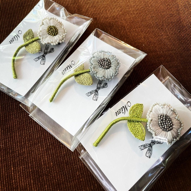Mizu刺繍教室からお花刺繍ブローチが届きました。
