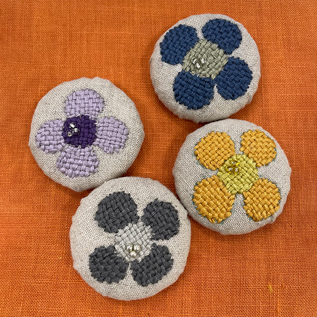 キャストオンローズステッチのお花モチーフは、一つ一つ表情が違って見える一点物。