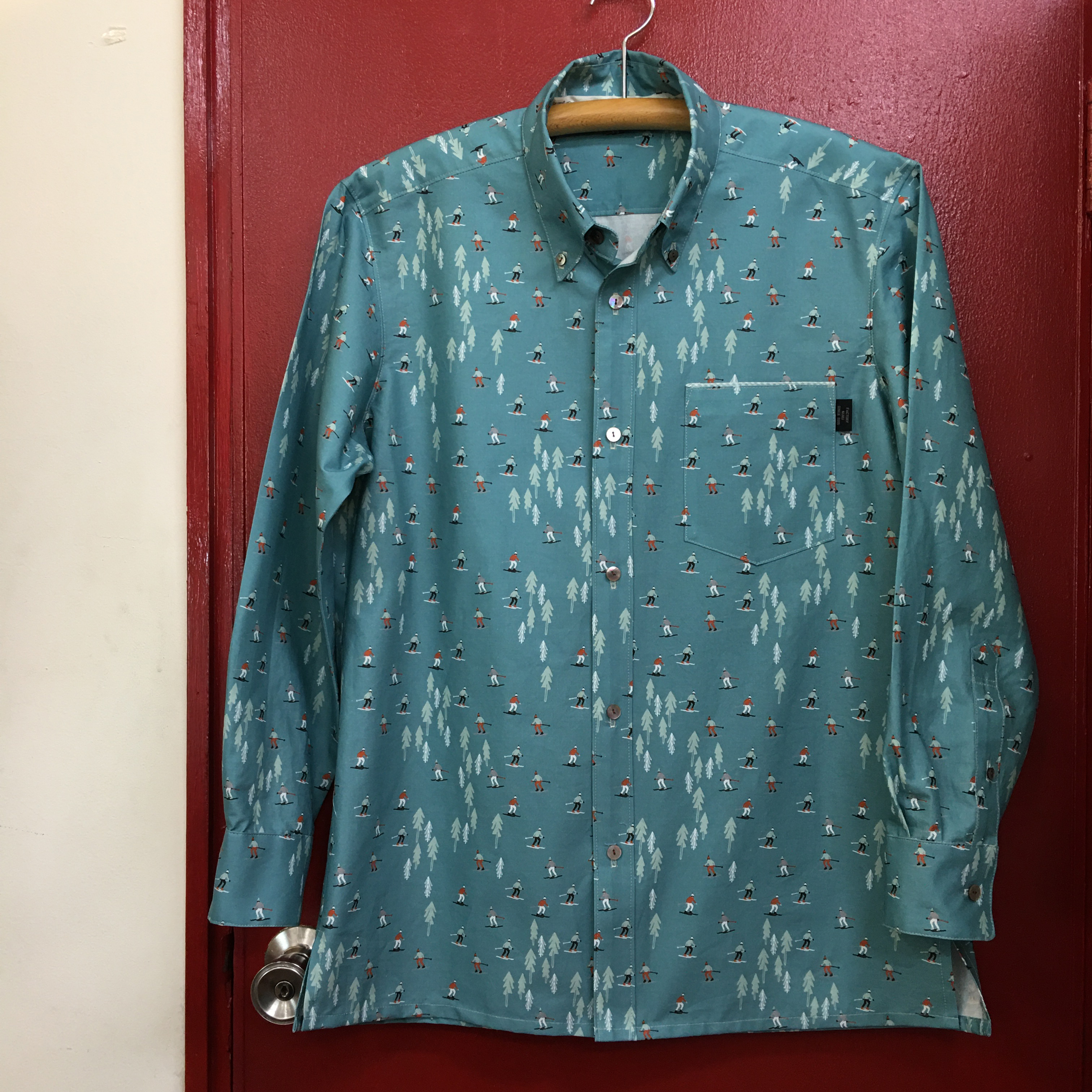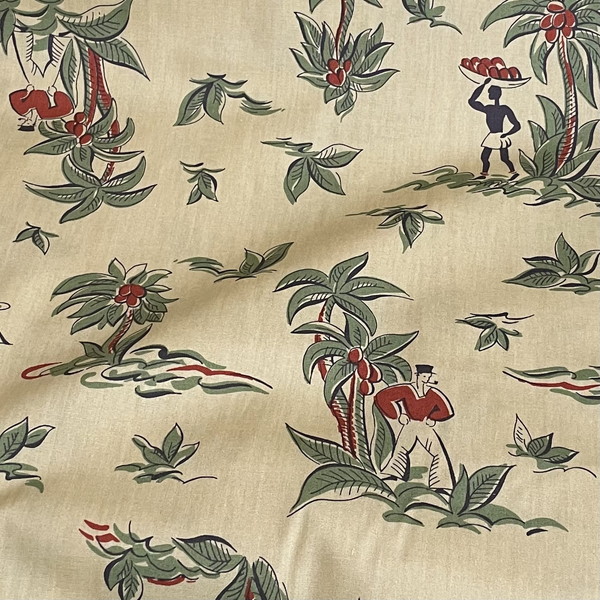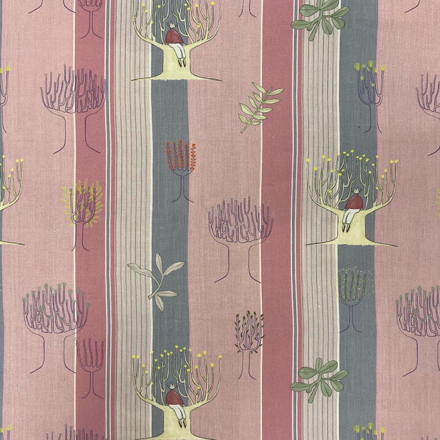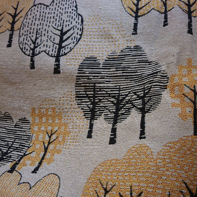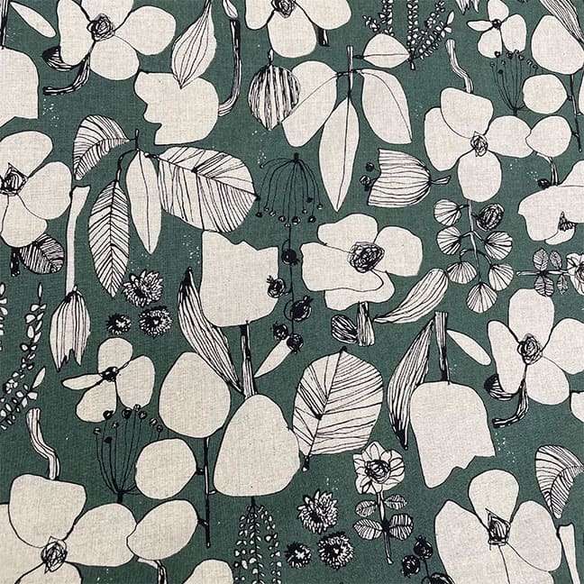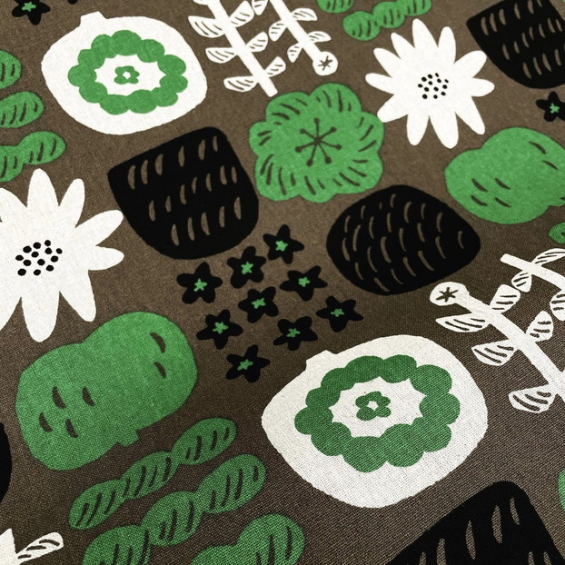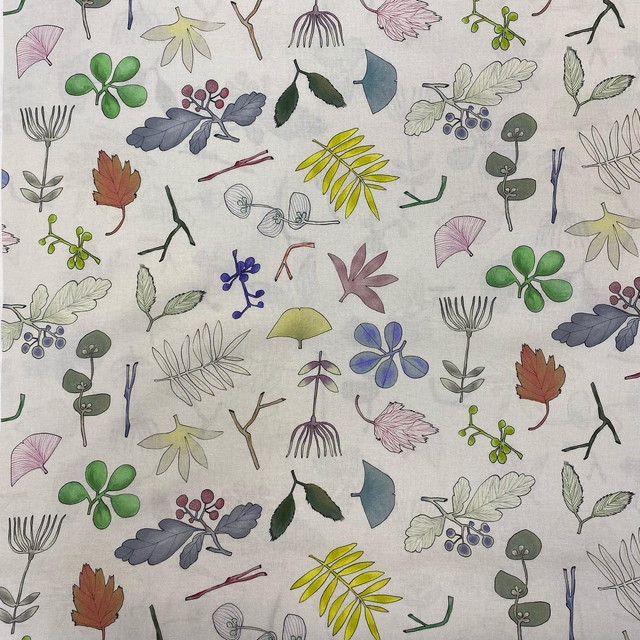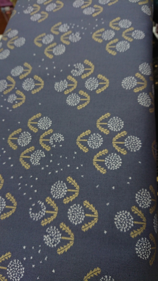 ●よく見ると、森の中をイメージした柄がとってもかわいい「ワンダーフォレスト」というタイトルの綿プリント。[写真右]