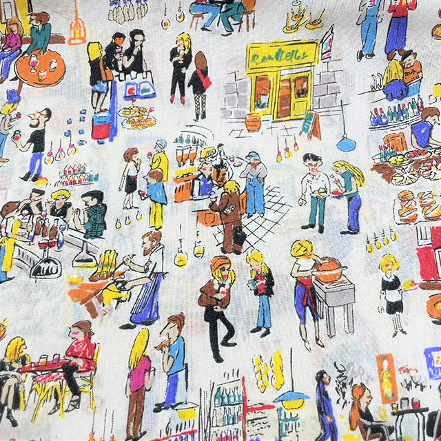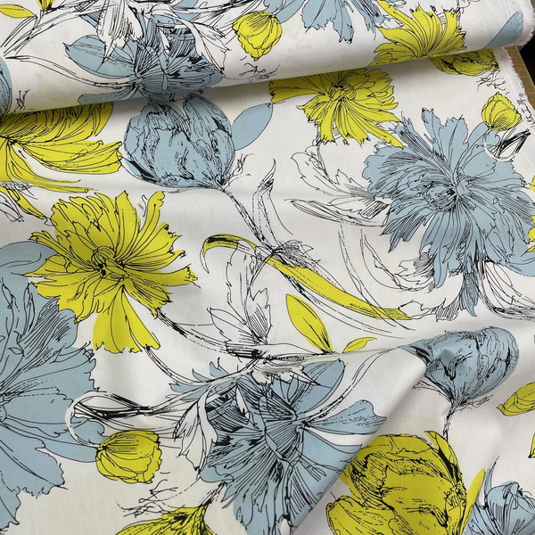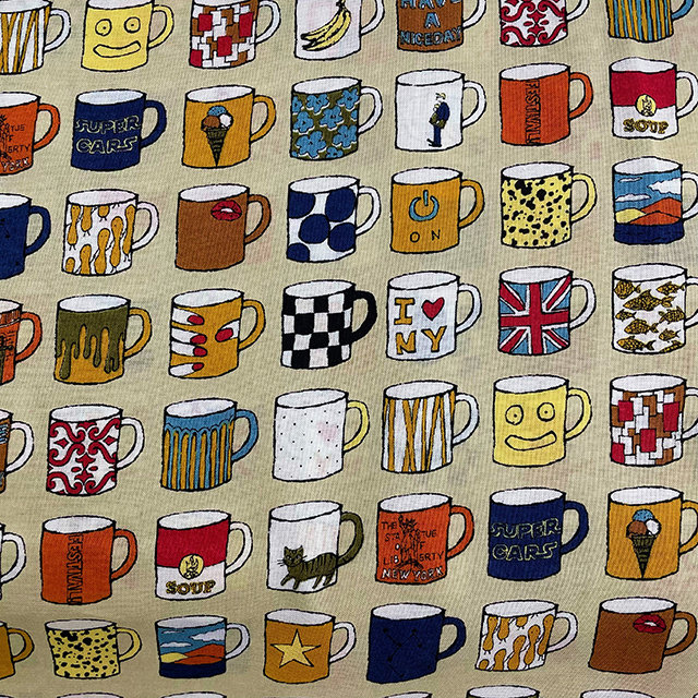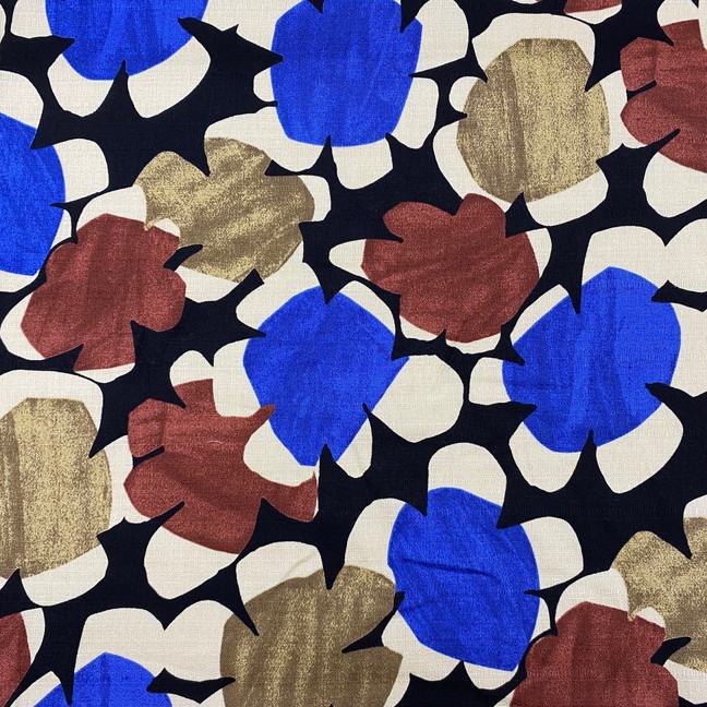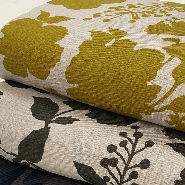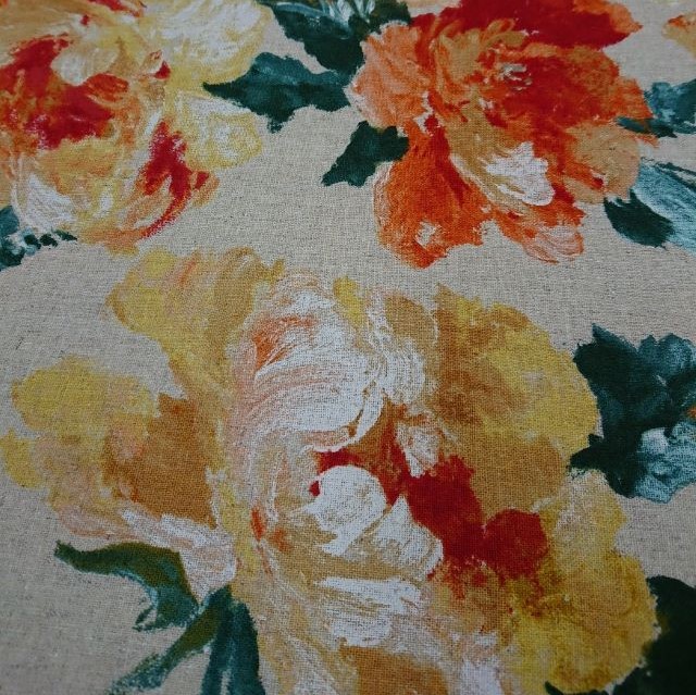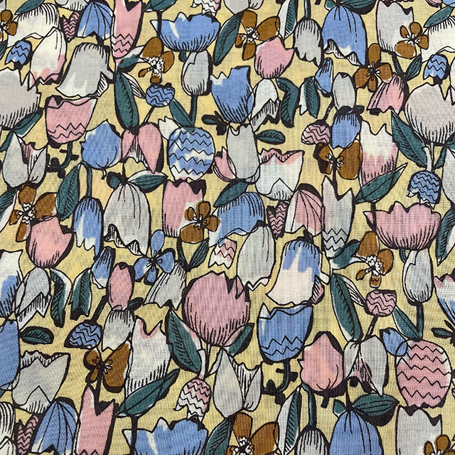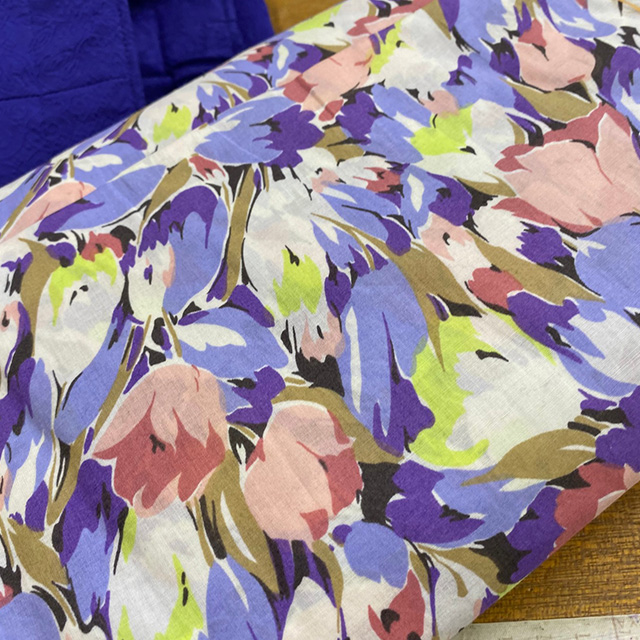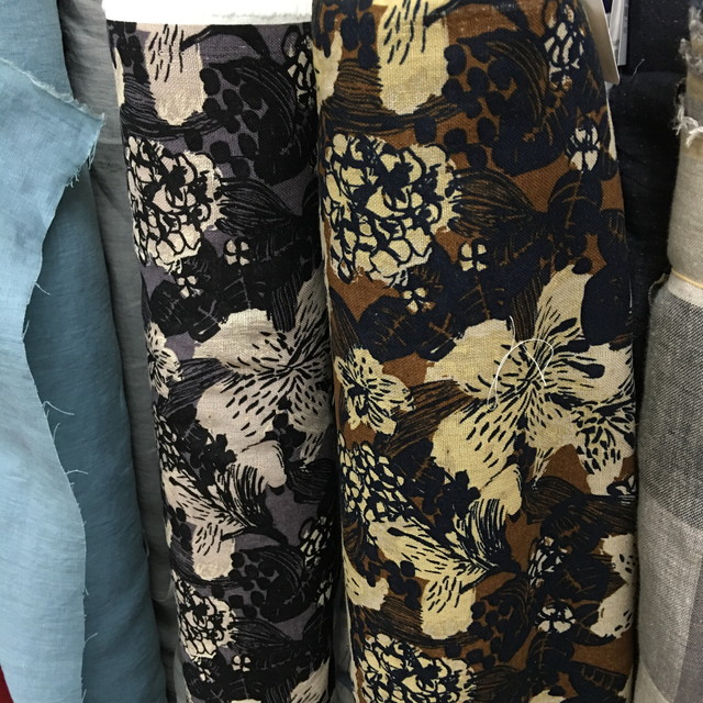 ●色も柄も個性的。何を作るかわくわくの綿麻プリント。¥1,365/m(税込) [写真右]