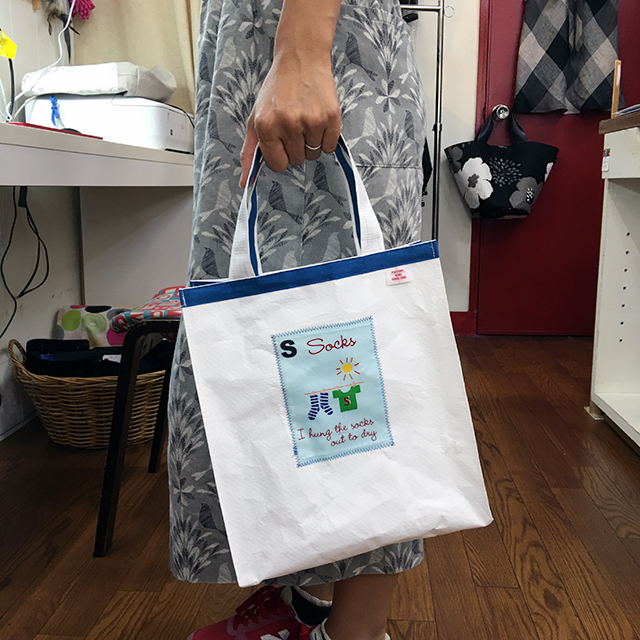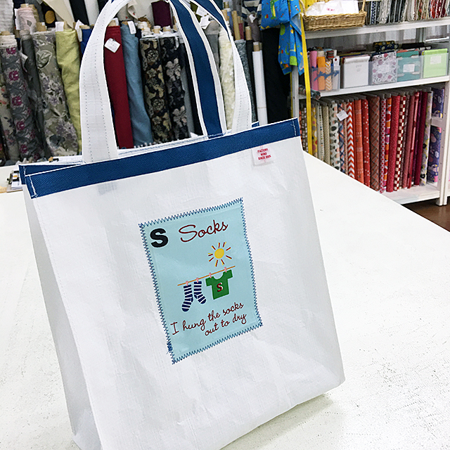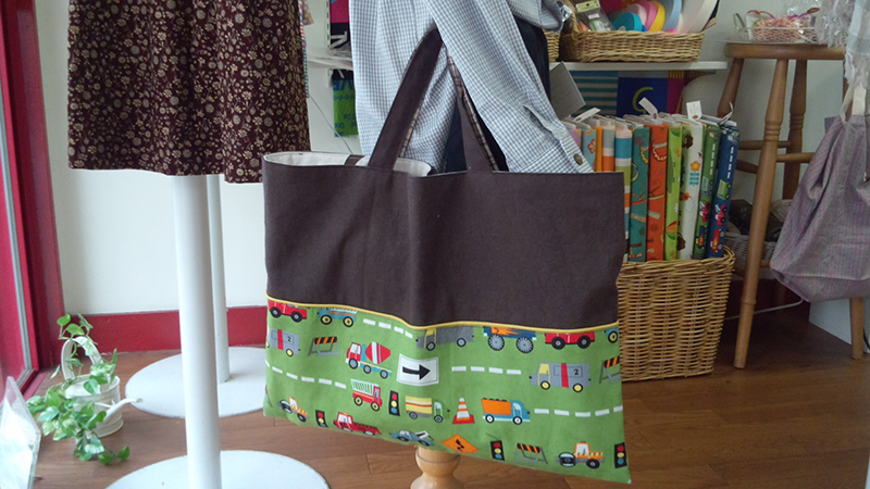キッズ向けのプリント布で絵本バッグを作ってみました。
