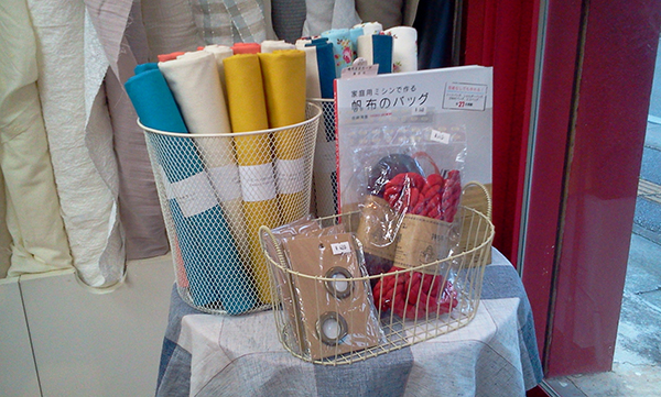 進入学、入園向けコーナーを作りました。バッグ作りなどのご相談にもお答えしてます。