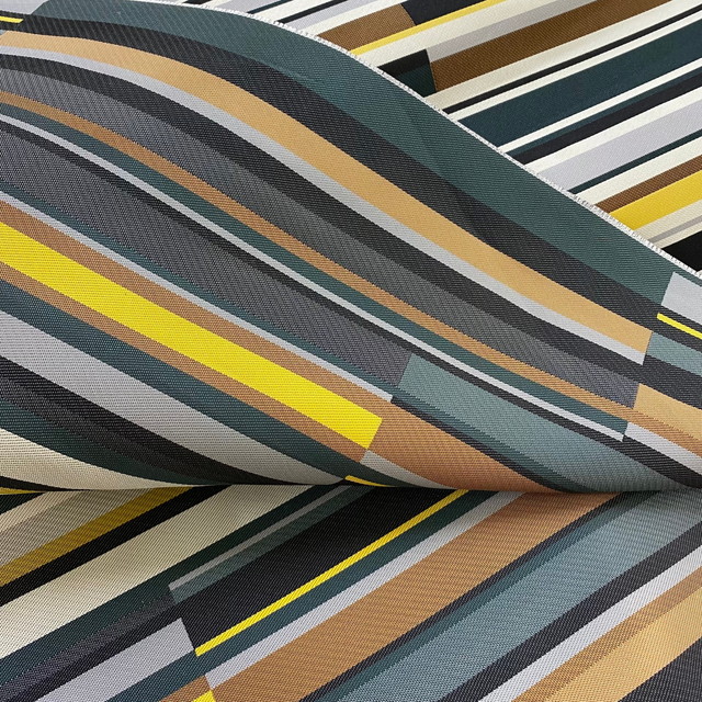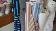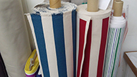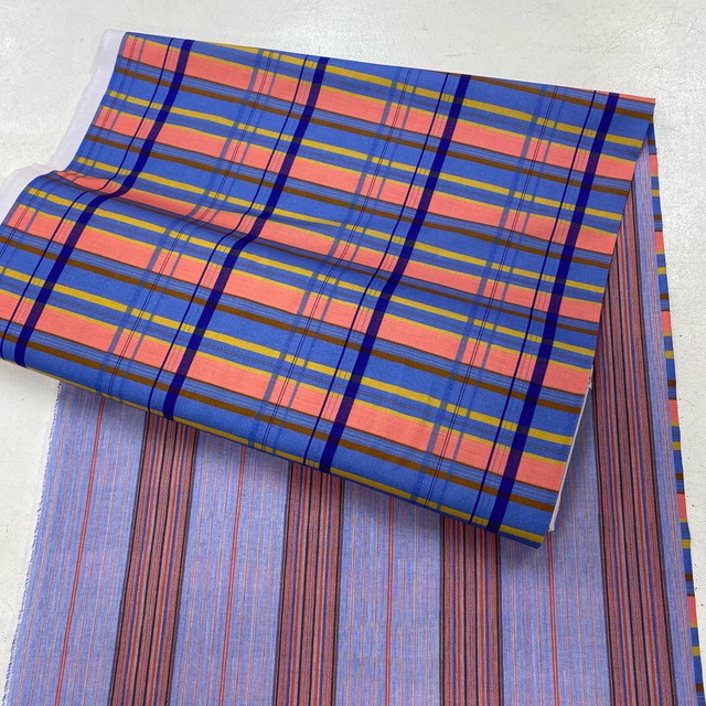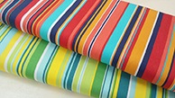 ●夏色のコットンストライプは110cm幅、¥1260/m(税込)。バッグや帽子、日傘などいかがでしょう? [写真右]