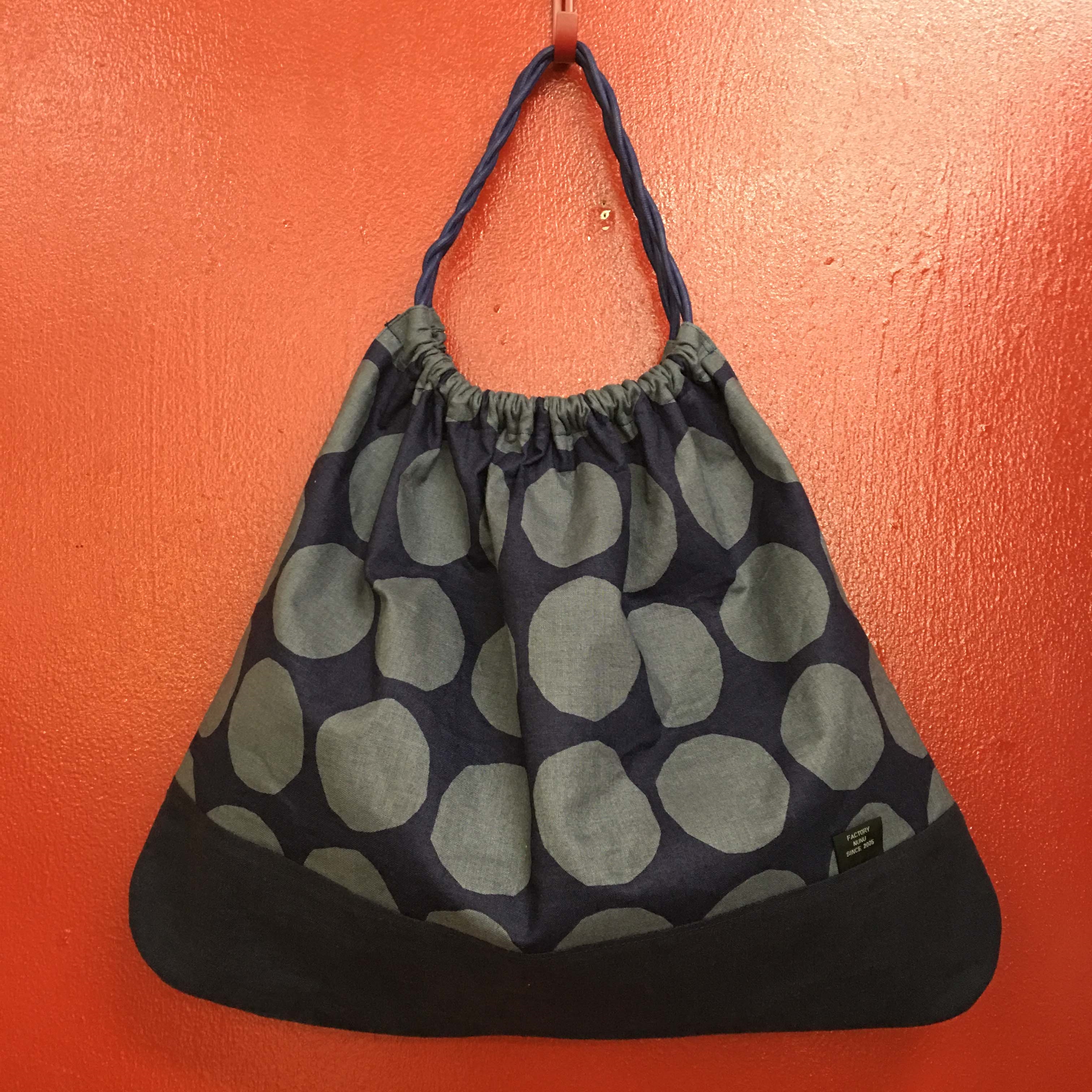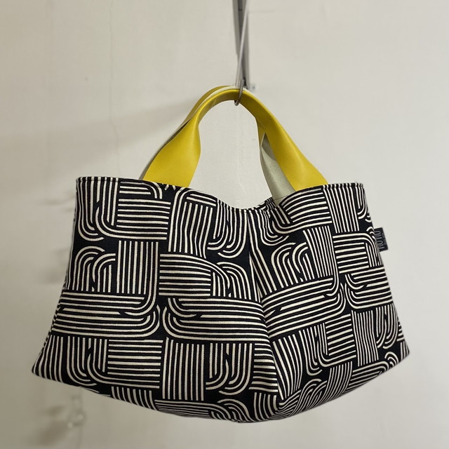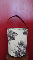 ●落ち着いた柄のバケツ型のショルダーバッグ。