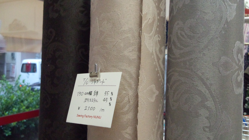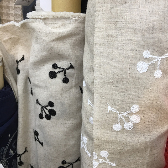 ポリエステル/綿のジャガードは150cm幅で¥2,100/m(税込)。全3色。 [写真右]