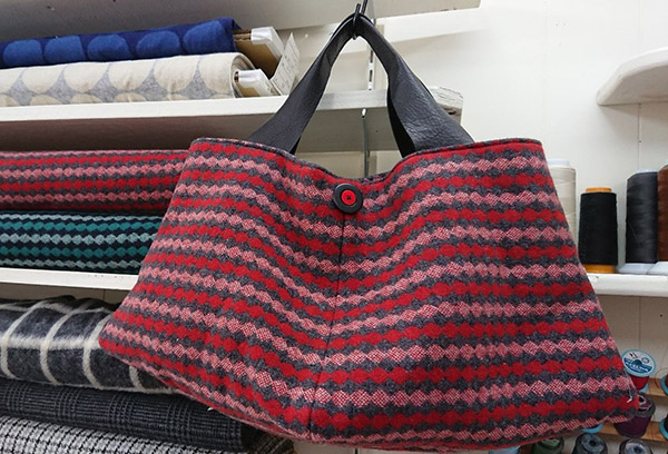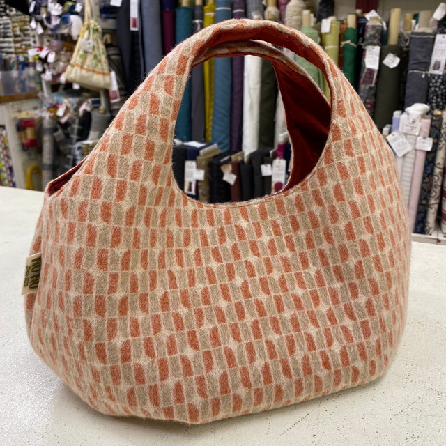 ドットウィードで作ったnunuオリジナルの「ひし形バッグ」 材料費約¥4,300 完成品は¥7,350 [写真右]