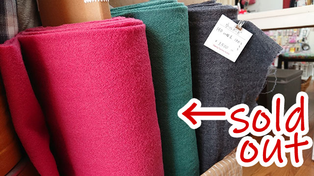 素材 毛 100% : 138cm幅 : ¥3,200/m(税込)