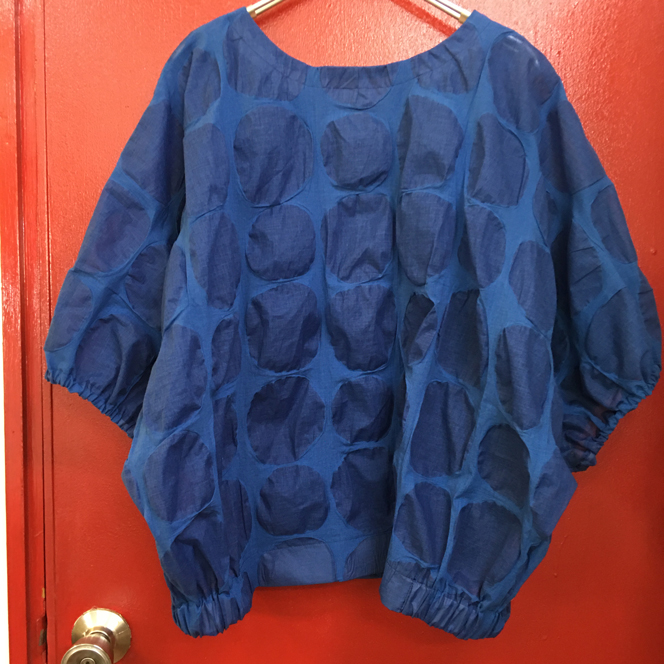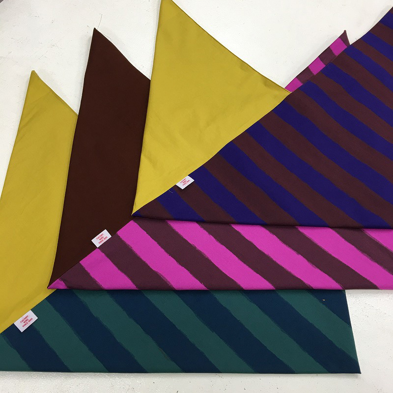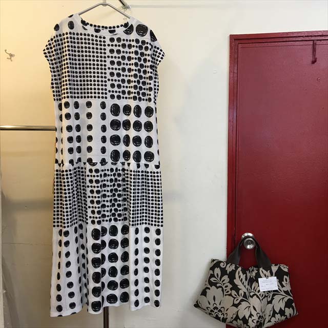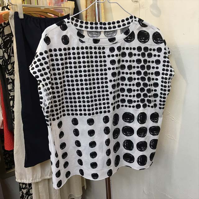 ●「、(コンマ)」をモチーフにした綿プリントのシリーズ。色、柄ともに新しい感じです。[写真左]