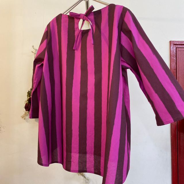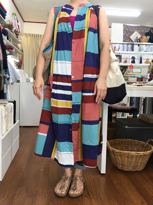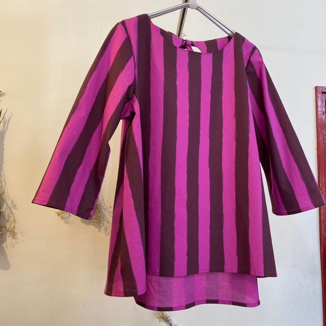 ●こちらも大人気のAラインチュニック。イチオシのボーダー柄で作りました。