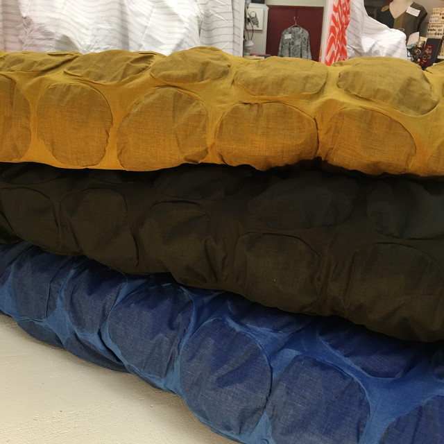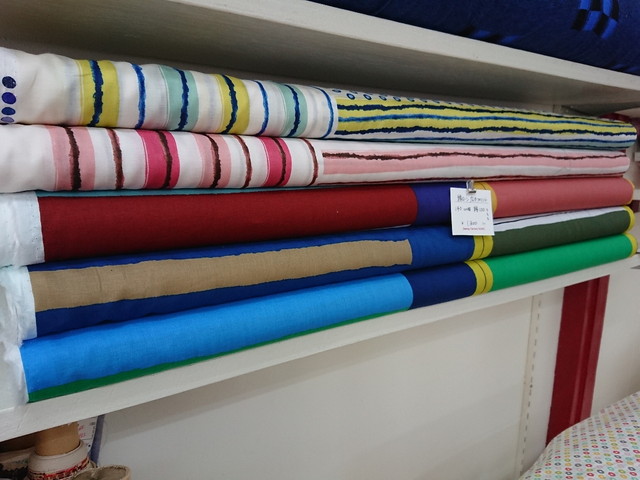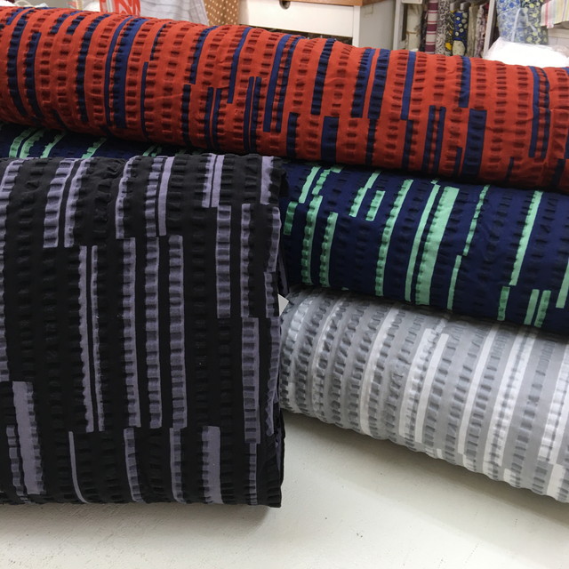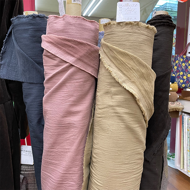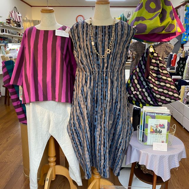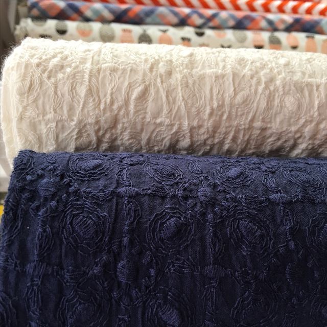 ちょっと和テイストのリップル素材なども揃いました。ソーイングを始めてみたいとちょっと思っている方には、この季節がおすすめです。