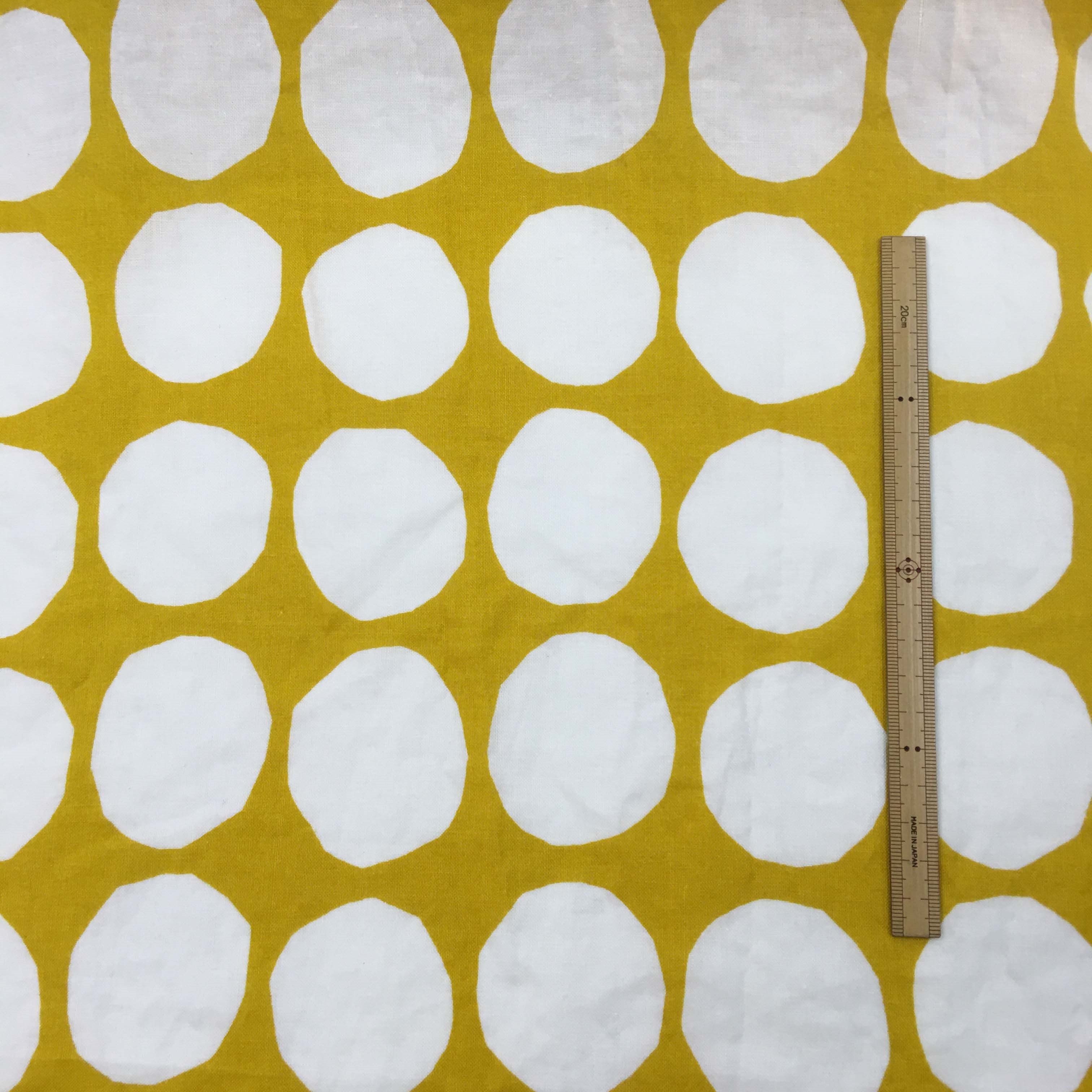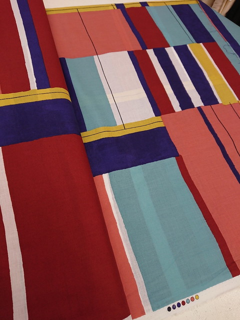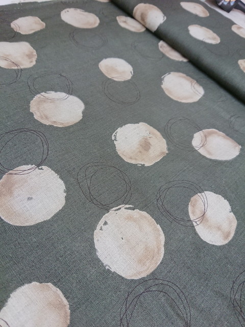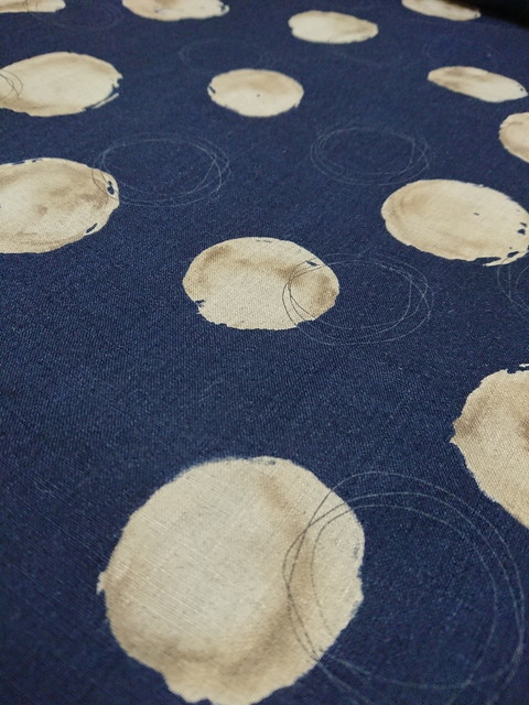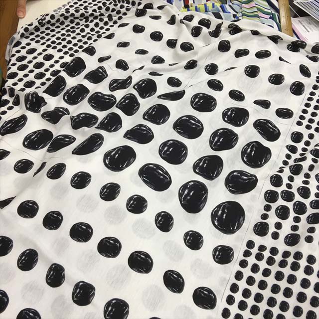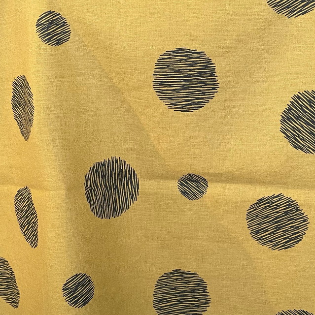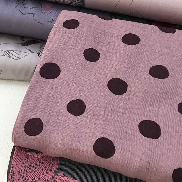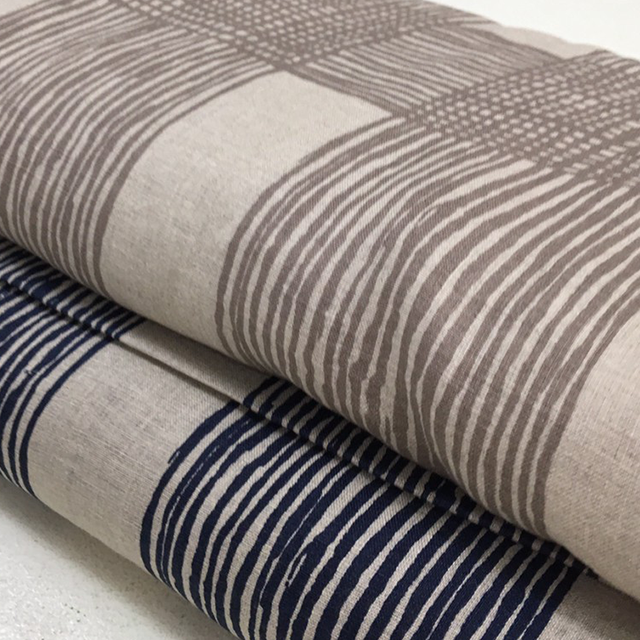大胆なタッチのラインやドットが綿ローン、シーチング、綿麻の3種類の布に描かれています。