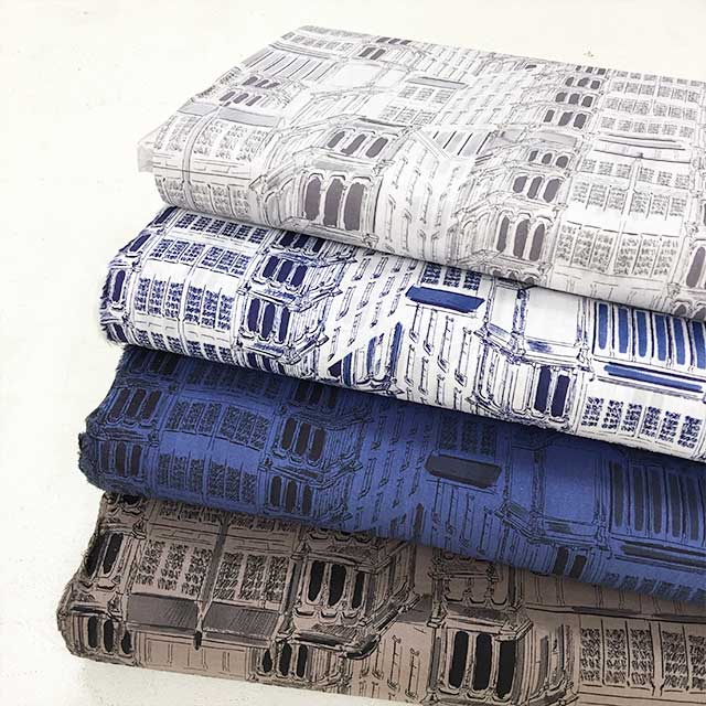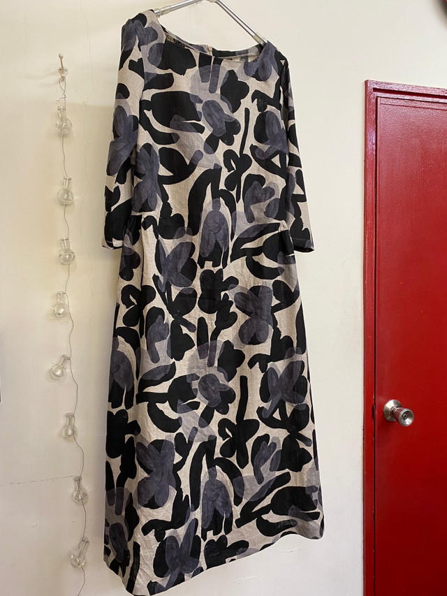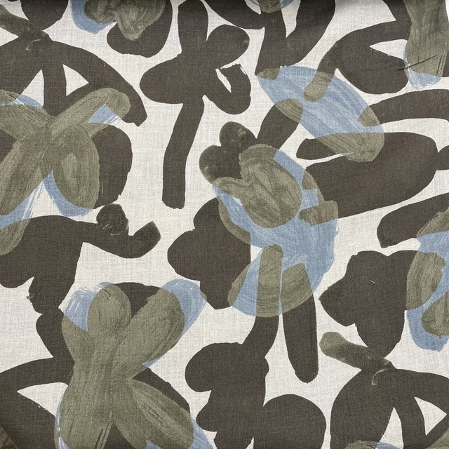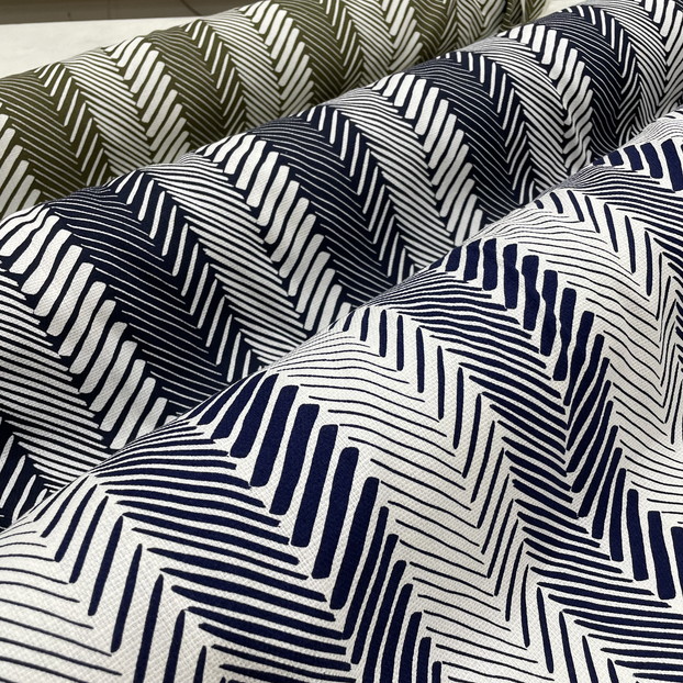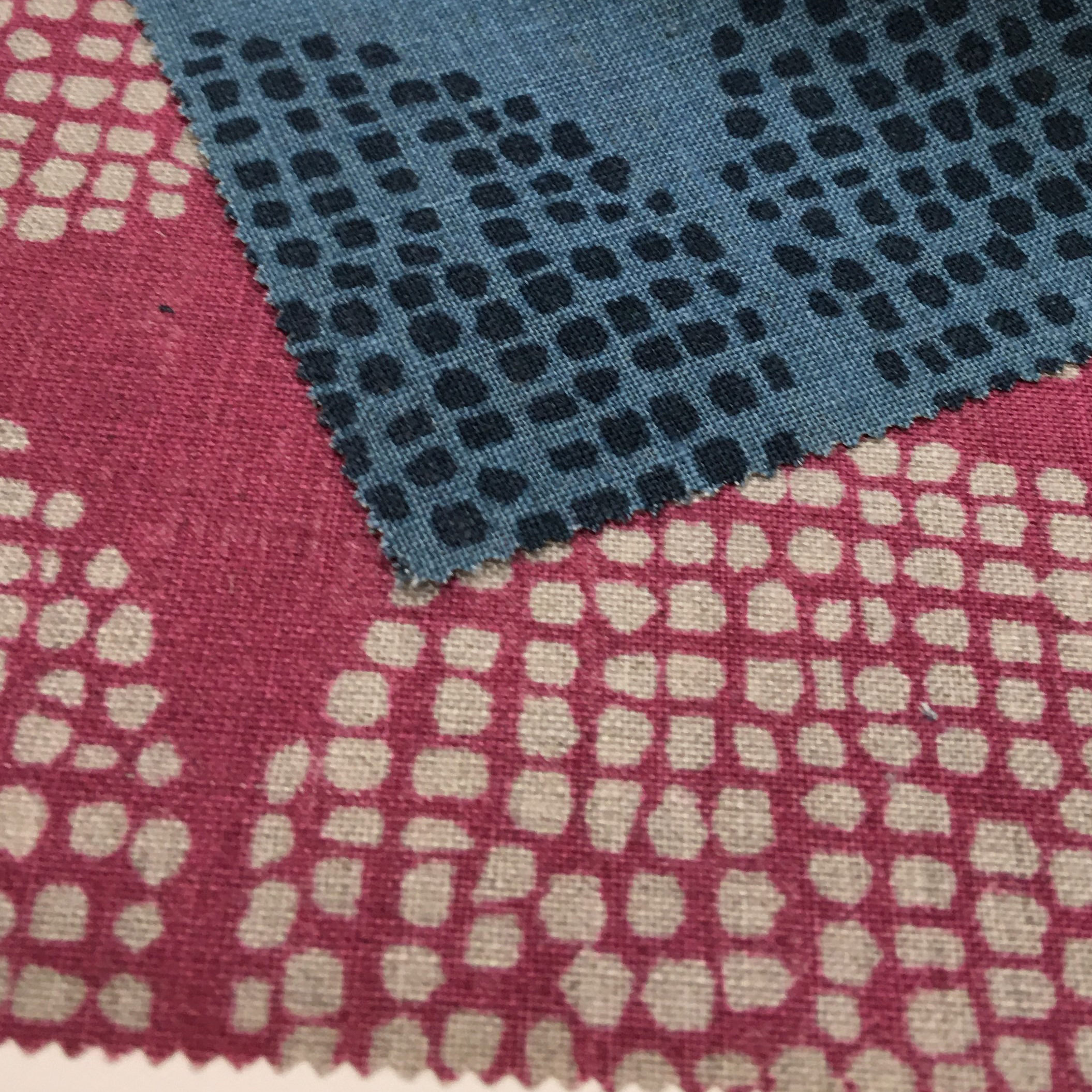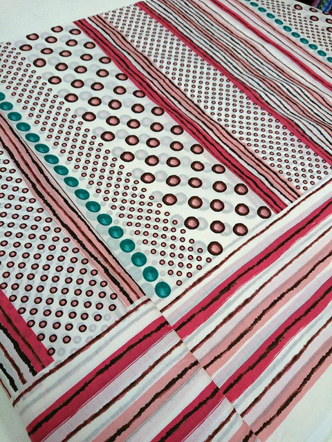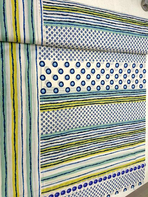 大胆なタッチのラインやドットが綿ローン、シーチング、綿麻の3種類の布に描かれています。