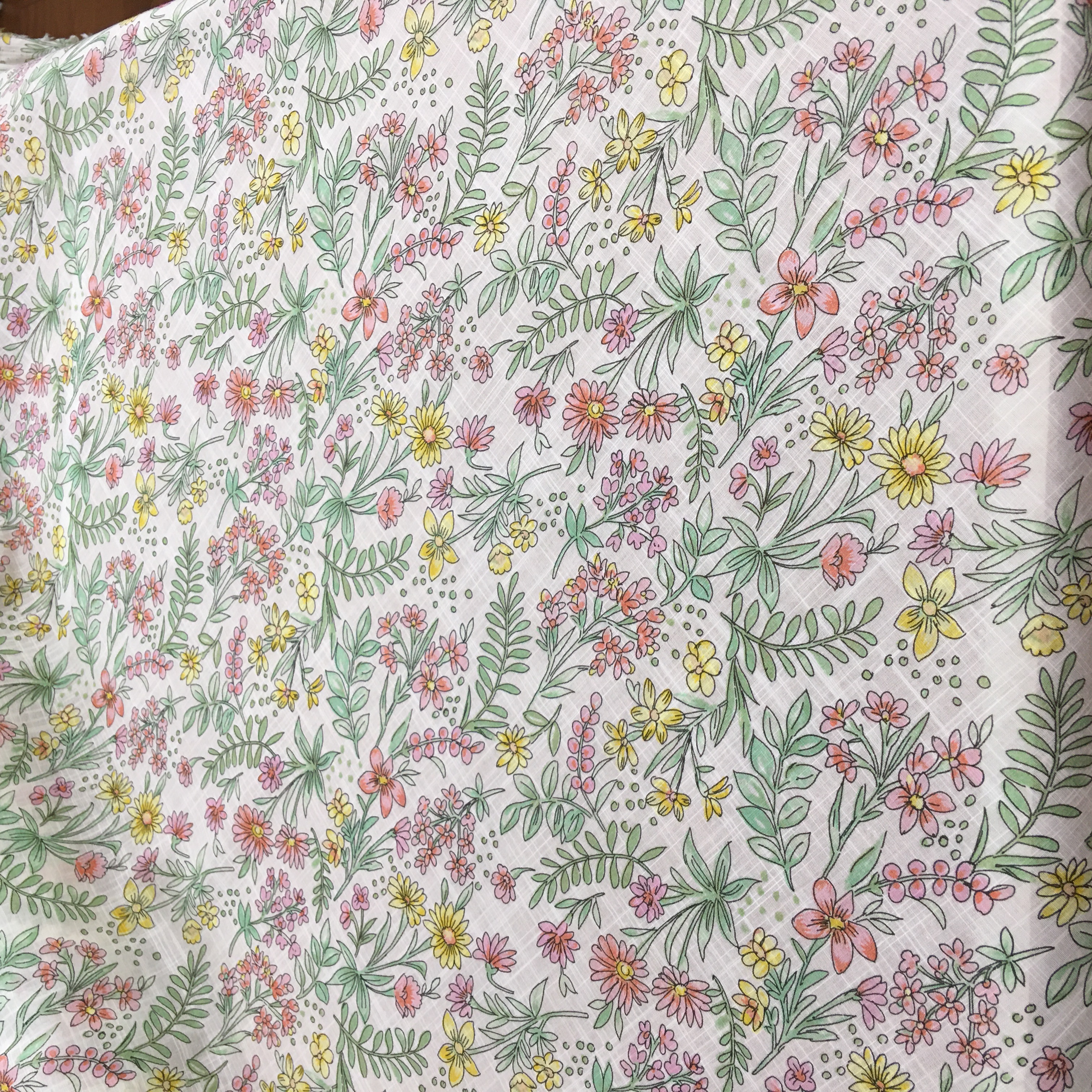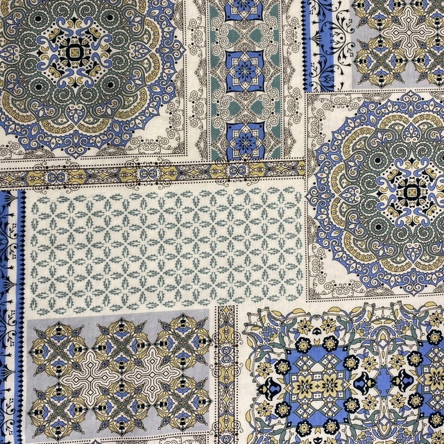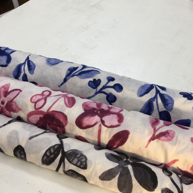 ●少し厚めの綿麻ワッシャープリント。明るい色めで3柄あります。ウェア、小物、インテリア、色々な使い道がありそうです。[写真中]