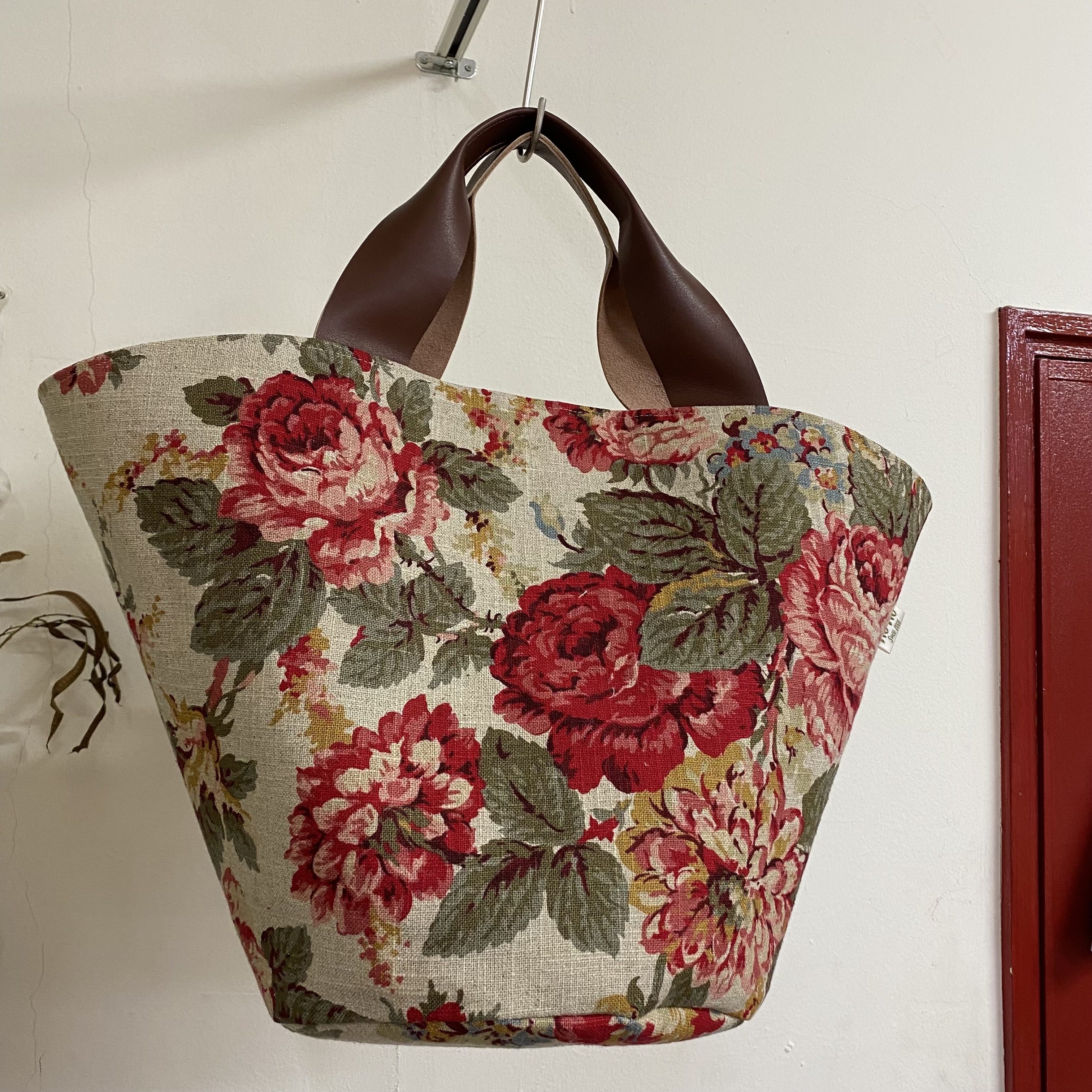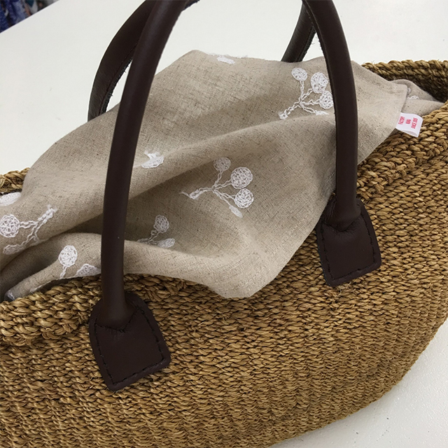 ・人気のオリジナルグラニーバッグを秋色のリネンでアレンジ。材料は¥3,700(税込)~ [写真左]