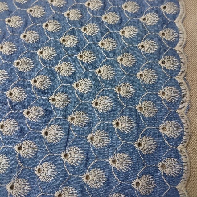 ※アイレットレースとは、生地に小さな穴(アイレット)を開け、その周りをかがったり刺繍で装飾したりしたレースのこと
