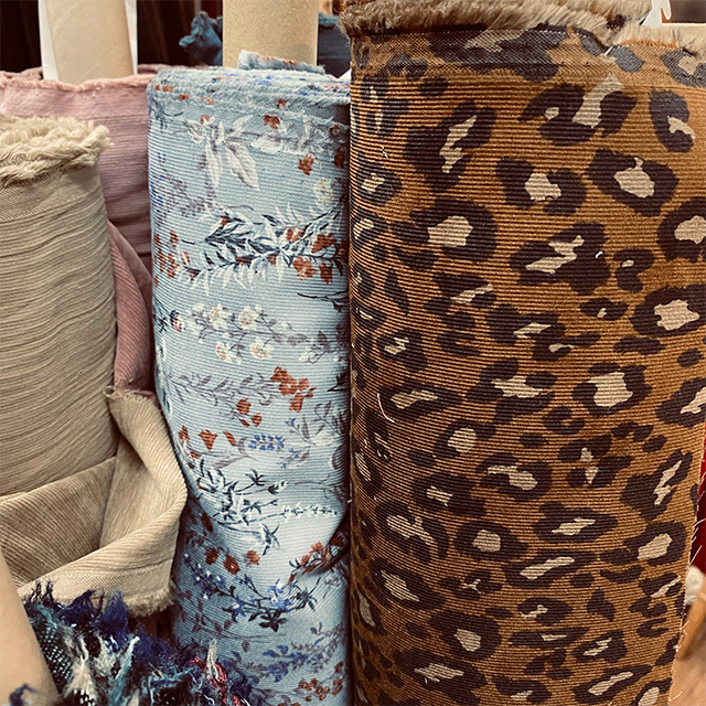 ●毎年人気の細畝コーデュロイ。今年は柄も色も大人っぽく。¥1,575/m(税込) [写真中]